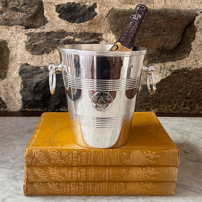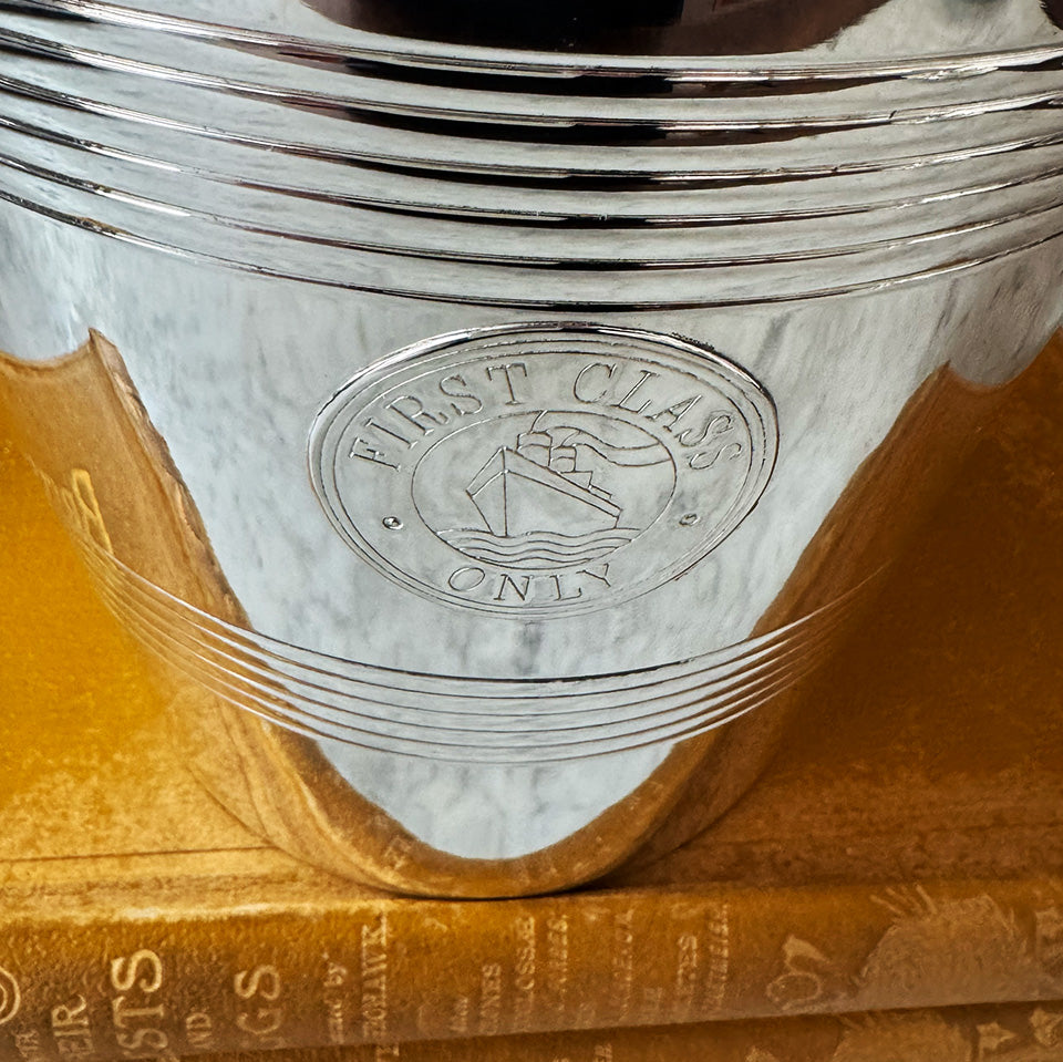 This Vintage Champagne Bucket is a stand-out with its "First Class Only" badge. These buckets were often made as a keepsake to be purchased by passengers aboard British ocean liners back in the day.