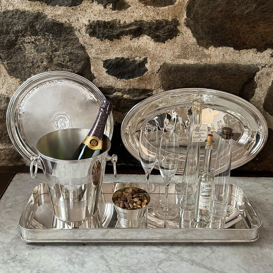 The vintage offerings in our collection are restored and re-plated in pure silver in London for us by our longtime silversmiths. Even with restoration, some of the pieces may sport more patina than others due to their unique history and use which we think only adds to their character and allure.