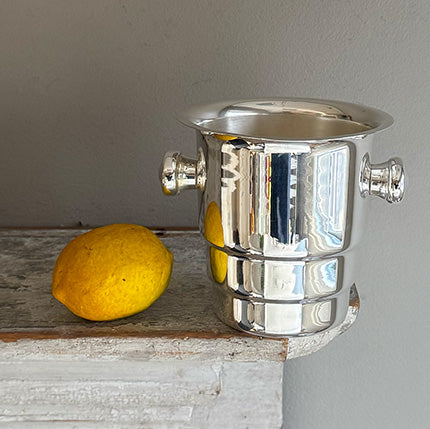 This Vintage French Ice Bucket is a favorite with its Deco stepped profile and knob handles.
