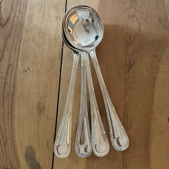 Set/4 Vintage Soup Spoons, Ribbon & Reed Pattern