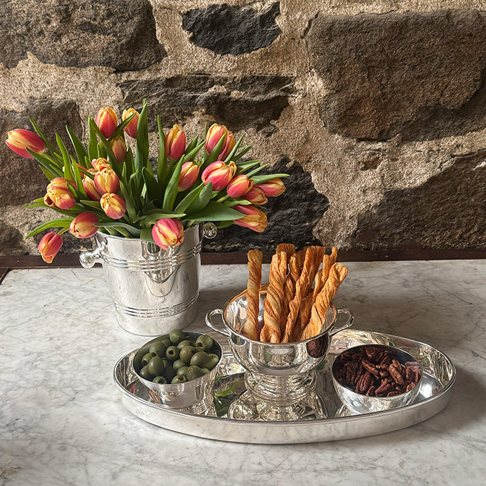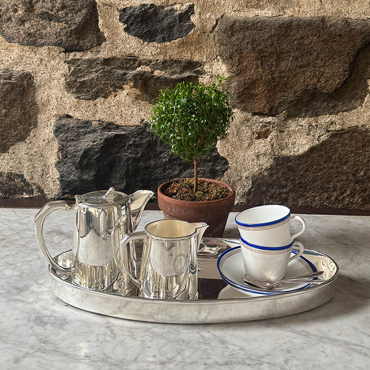 The vintage offerings in our curated collection of vintage European hotel silver and barware are restored and re-plated in pure silver in London by our longtime silversmiths. Even with restoration, some of the pieces may sport more patina than others due to their unique history and use which we think only adds to their character and allure.
