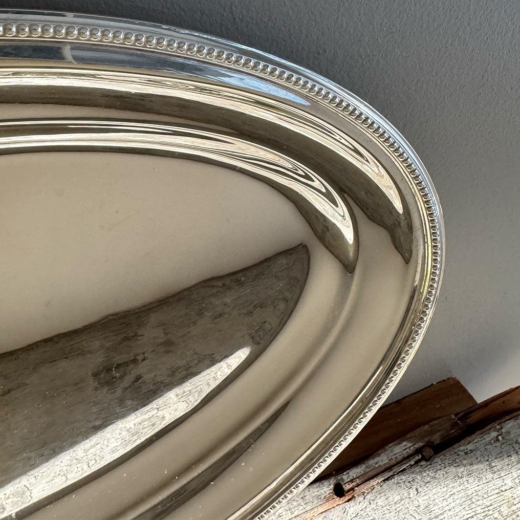 We love the classic lines of this streamlined Vintage Oval Platter. The diminutive beaded border adds the finishing touch to its appealing design.