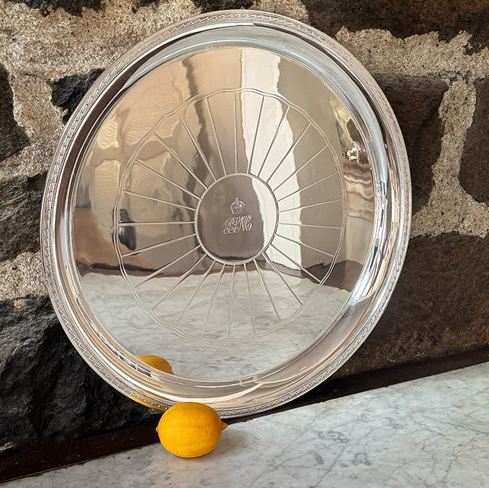 This Vintage 18" Round Tray is a coveted piece of collectible European hotel silver from the 1930's.