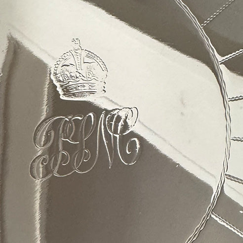 Made by Elkington Silversmiths, this tray was used for service in the dining rooms aboard ships in the fleet of the "Pacific Steam Navigation Company." Established in the 1830's in London, this merchant shipping line started its steamship routes along the west coast of South America.