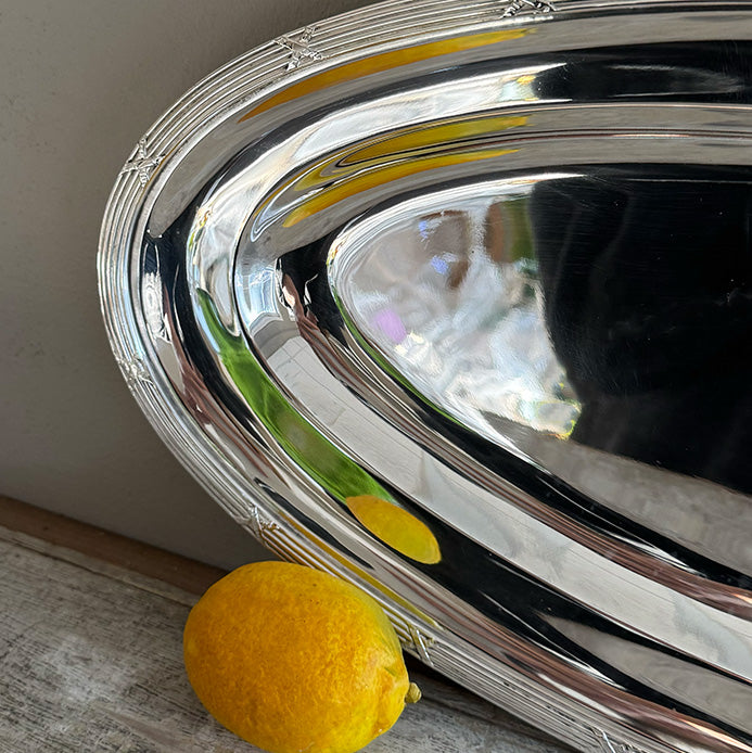 The vintage offerings in our collection are restored and re-plated in pure silver in London for us by our longtime silversmiths. Even with restoration, some of the pieces may sport more patina than others due to their unique history and use which we think only adds to their character and allure.