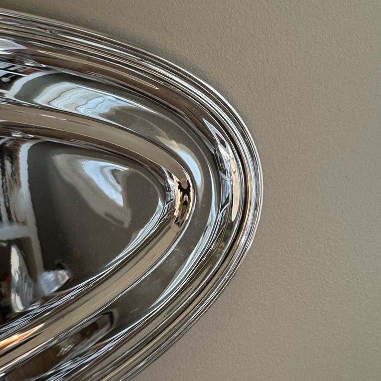 The vintage offerings in our collection are restored and re-plated in pure silver in London for us by our longtime silversmiths. Even with restoration, some of the pieces may sport more patina than others due to their unique history and use which we think only adds to their character and allure.