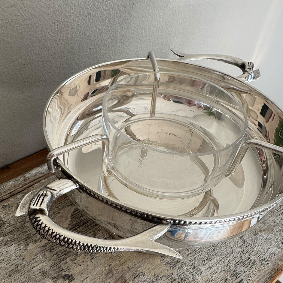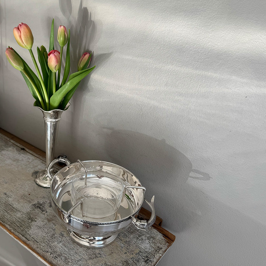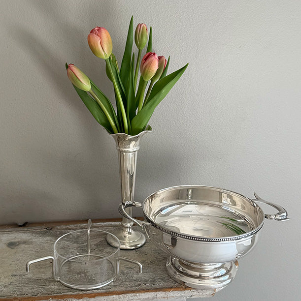 The vintage offerings in our collection of European hotel silver & barware are restored and re-plated in pure silver in London by our longtime silversmiths. Even with restoration, some of the pieces may sport more patina than others due to their unique history and use which we think only adds to their character and allure.