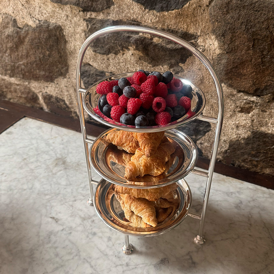 Vintage 15" Tiered Plate Stand with 3 Silver Plates