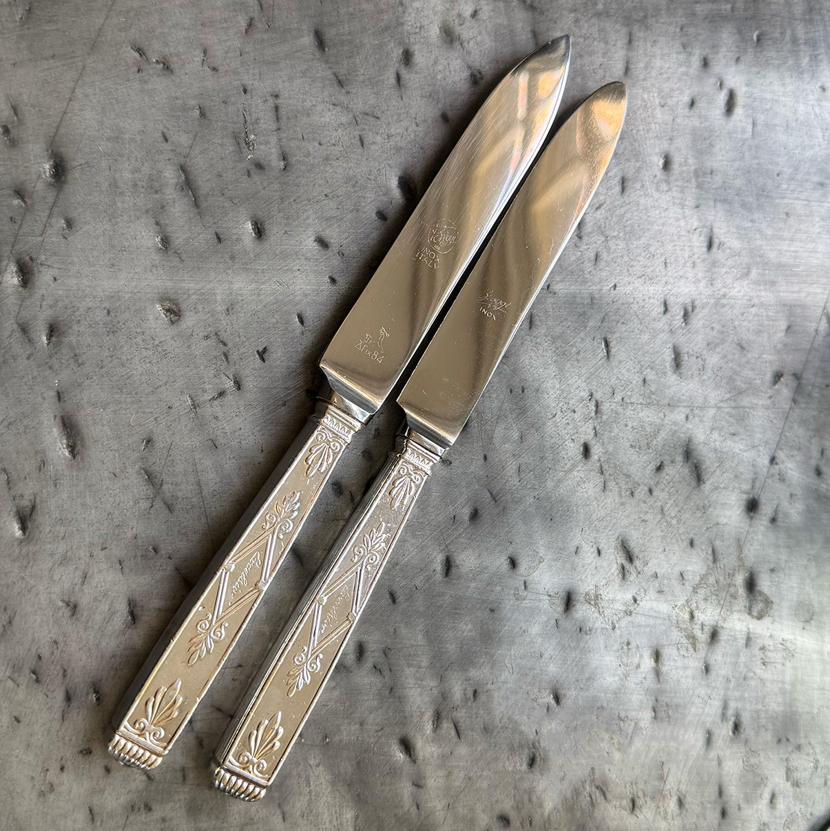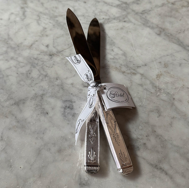 Imagine these knives atop one's room service tray with starched white linens with the morning sun streaming through the windows overlooking the Spanish Steps. Or, used for dining in the elegant lobby restaurant - wood paneled with marble flooring and waiters bustling about the white linen topped tables.