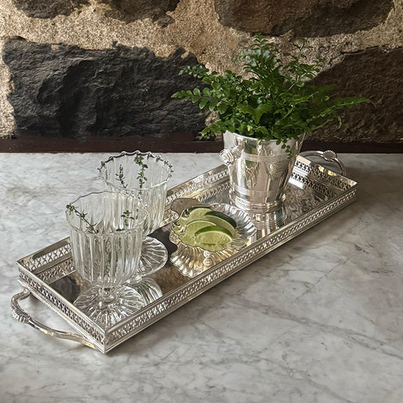 The vintage offerings in our curated collection of vintage European hotel silver and barware are restored and re-plated in pure silver in London by our longtime silversmiths. Even with restoration, some of the pieces may sport more patina than others due to their unique history and use which we think only adds to their character and allure.