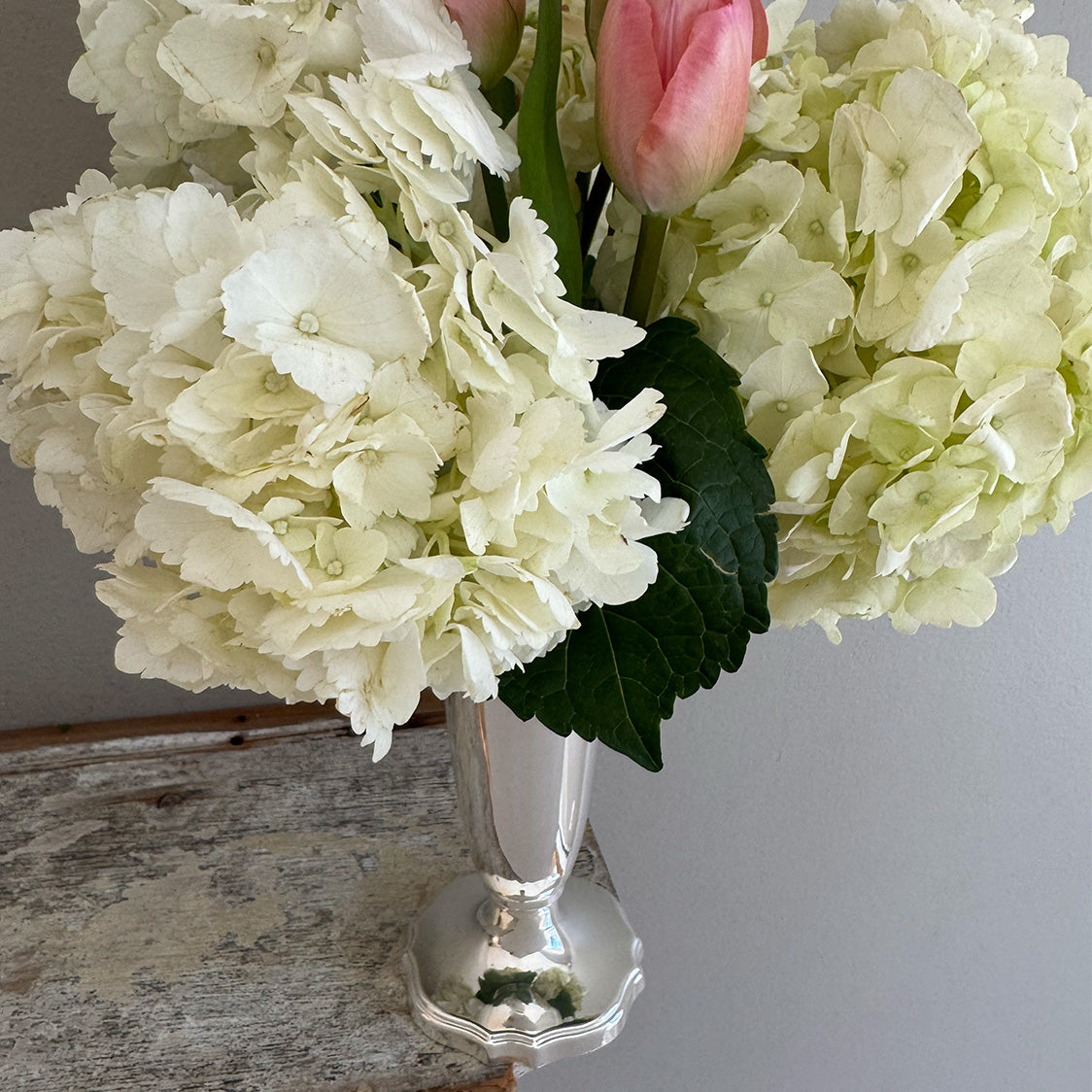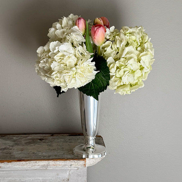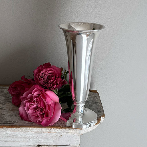 This vintage vase adds a touch of silver chic to a side table, coffee table, vanity, desktop, powder room or bedside table. Makes a wonderful gift filled with fresh blooms.