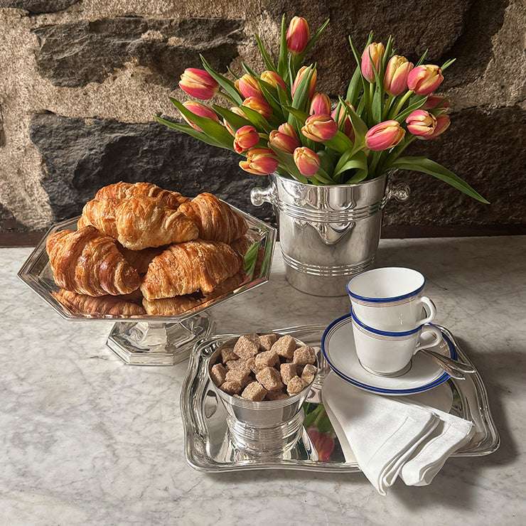 The vintage offerings in our European hotel silver collection are restored and re-plated in pure silver in London by our longtime silversmiths. Even with restoration, some of the pieces may sport more patina than others due to their unique history and use which we think only adds to their character and allure.