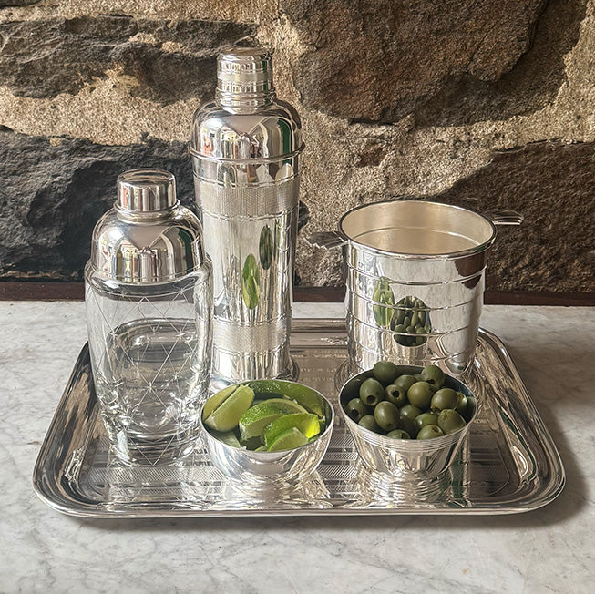 The vintage offerings in our collection are restored and re-plated in pure silver in London for us by our longtime silversmiths. Even with restoration, some of the pieces may sport more patina than others due to their unique history and use which we think only adds to their character and allure.