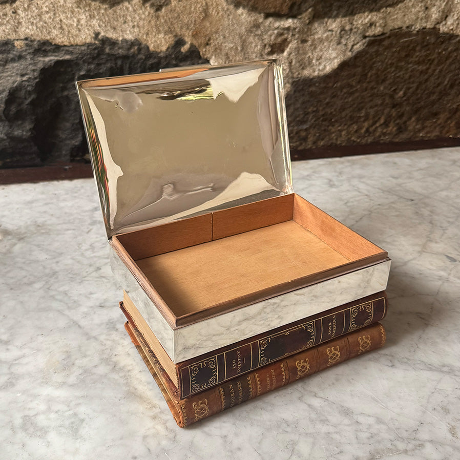 A vintage box is a unique gift for that someone who has everything.  It adds a touch of silver chic to a dresser for stashing cufflinks and jewelry, a desktop for paperclips or stamps, and a collection of assorted silver boxes always adds glamour to a coffee table vignette.